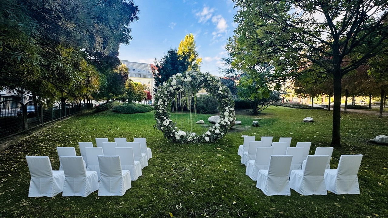 Az étteremtől egy karnyújtásnyira a szemben lévő Kerekerdő park zöldjében tartható a szertartás.